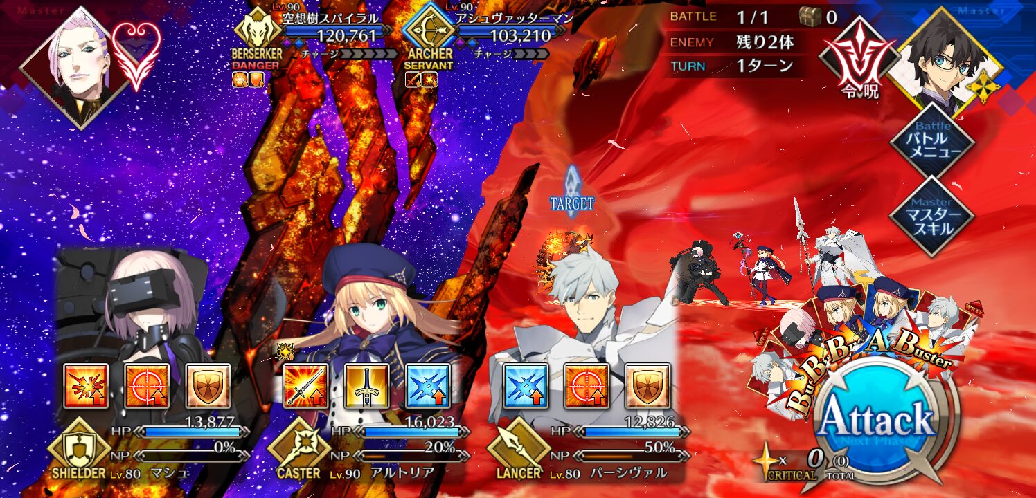 ………最後1ターンでチャージ3溜まるとかいう、通常攻撃が全体攻撃のバーサーカーがしちゃいかんだろ!?ってムーブしてましたが………なんとが空想樹の伐採完了直前まで来ました!