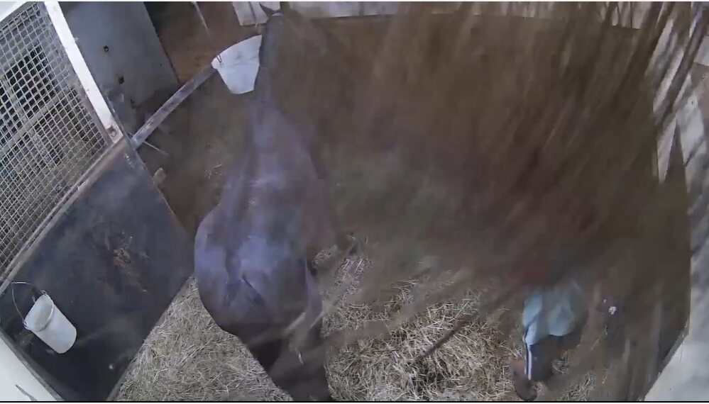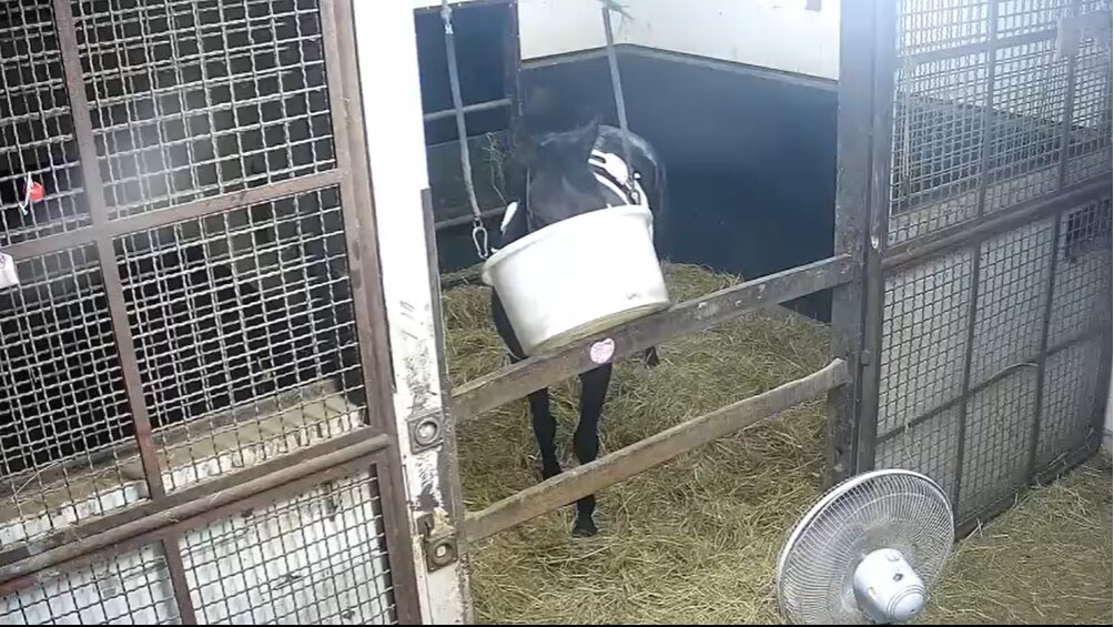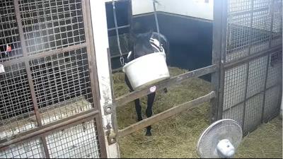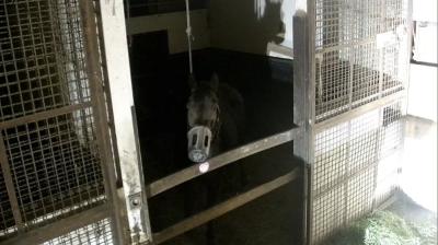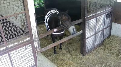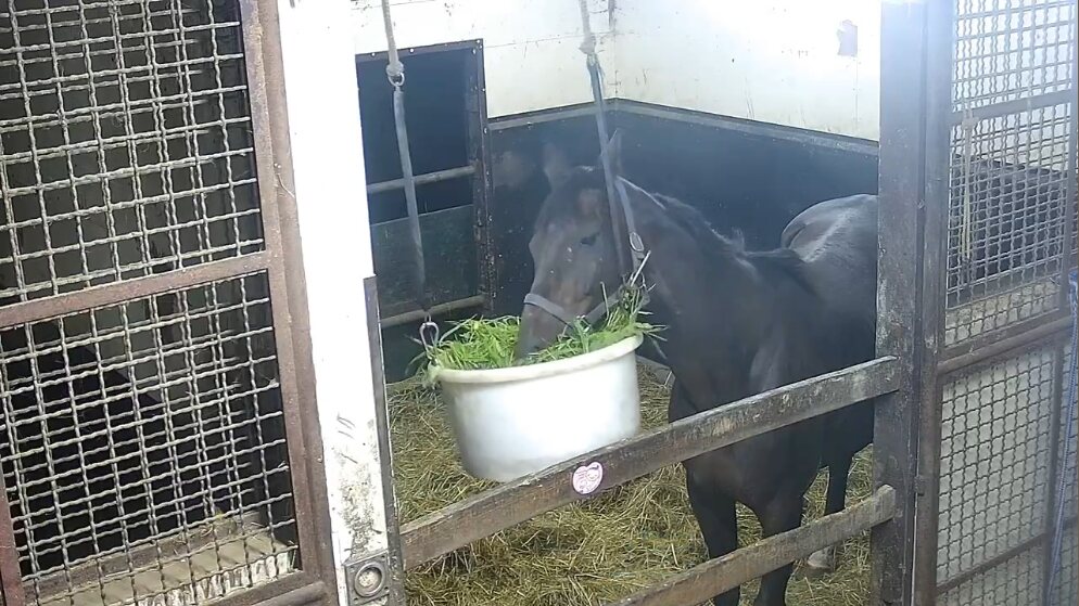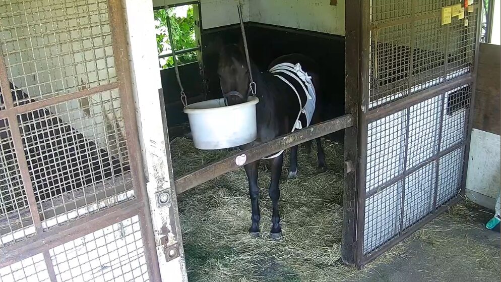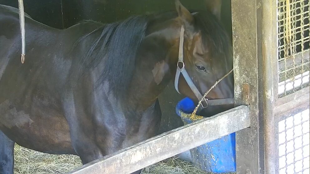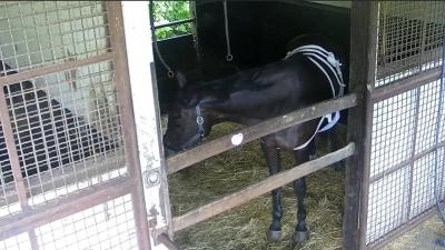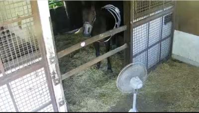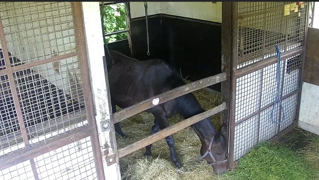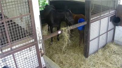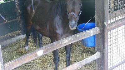 102:イオス(イオスさん・📸️): こども好きの鹿毛でベテラン牝馬その2。長屋で華麗なステップを決めている。