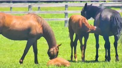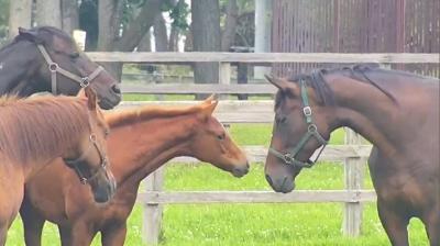 ┗イオスの2025(おすし・🍣): 父マクフィーの鹿毛の牝馬。103に近づいてはシュシュに威嚇されている。 - 8二次元好きの匿名さん25/06/16(月) 02:03:47
