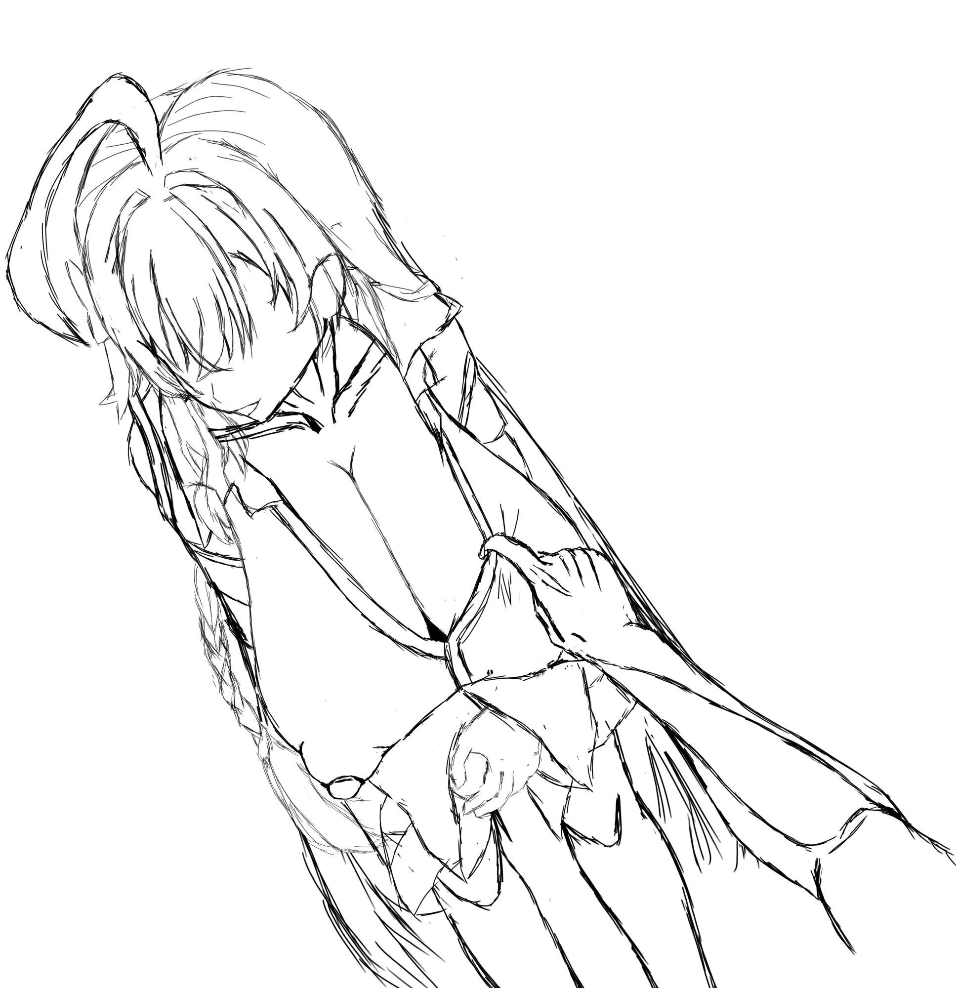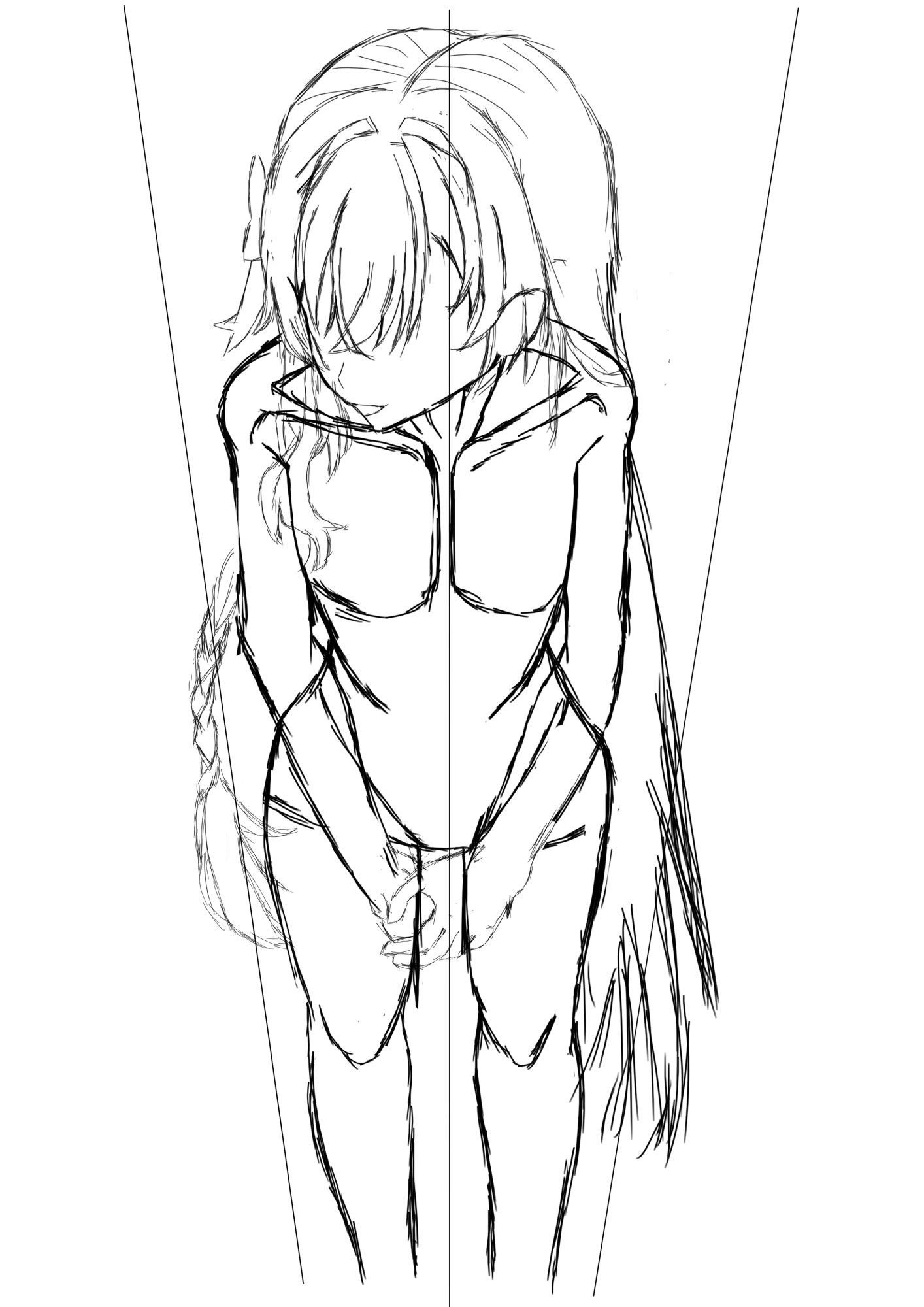 ・俯瞰横向きがまだまだ難しい。かなり直したのにまだ違和感がある。髪の向きとかも