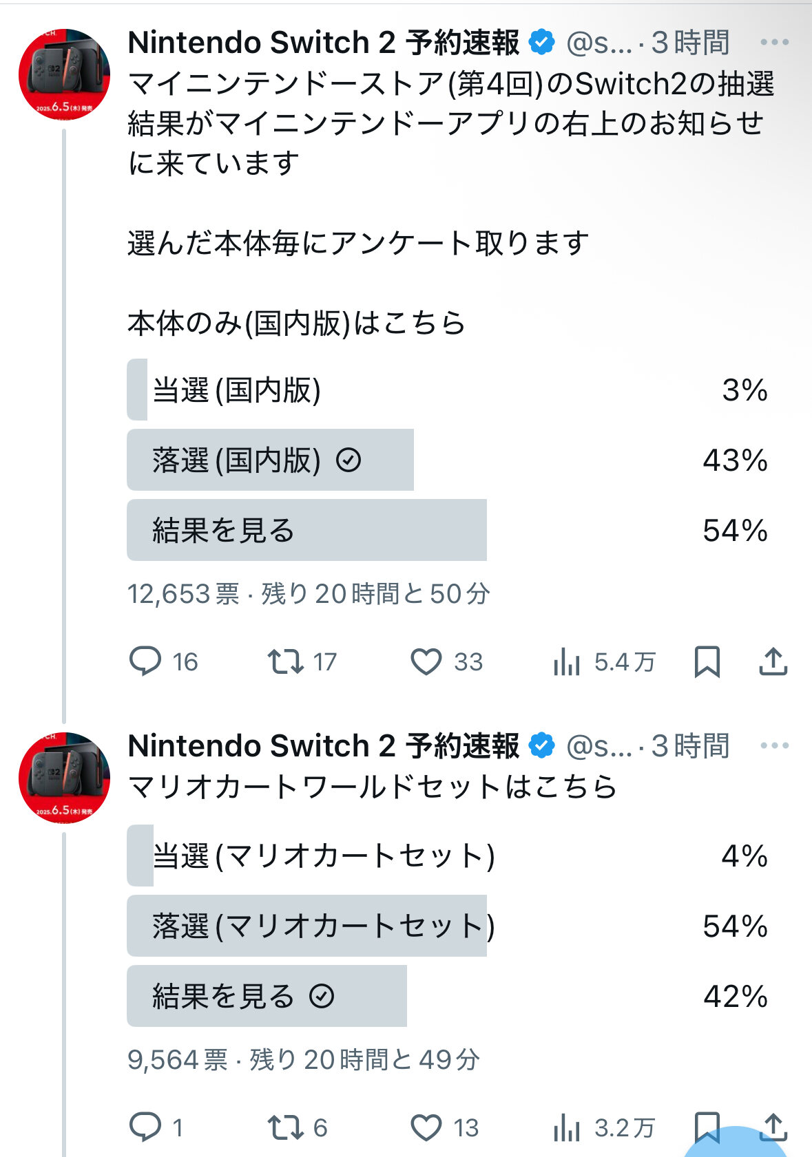 任天堂だけで4回も抽選して他の量販店でもあちこちで抽選してるのに未だに買えてない奴は努力が足りないだけだろ