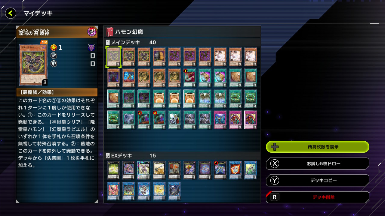 半端にパック引いた俺が悪いのは承知なんだが下級のSRどもの為にパック引かなきゃなのが作るのを躊躇わせる。三幻魔全部三枚揃ってるし天界蹂躙も2枚あるし。ラビエル特化とスキドレ霹靂ハモンに興味あるんだけど必須カードとかある?