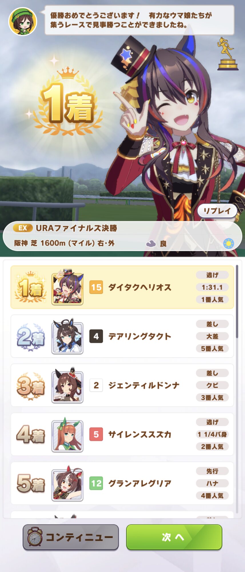 ジェンティルとバチバチしつつもヘリオス好みのお弁当を作って一緒に食べる、他三名より素早くヘリオスをお膝に迎え入れる等、攻勢を仕掛けている。 - 5二次元好きの匿名さん25/06/18(水) 21:34:04