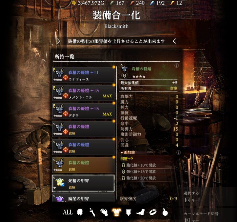 書き忘れたけどランクによる上昇量が多い武器と胴体防具以外は鋼とか青銅とかの高品質高グレードの当たり追加護なら十分代用出来るのん