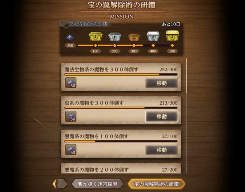 ちなみに宝の罠解除術の研鑽ミッションはミッションパス買うと発見術の書系が追加されるらしいよ