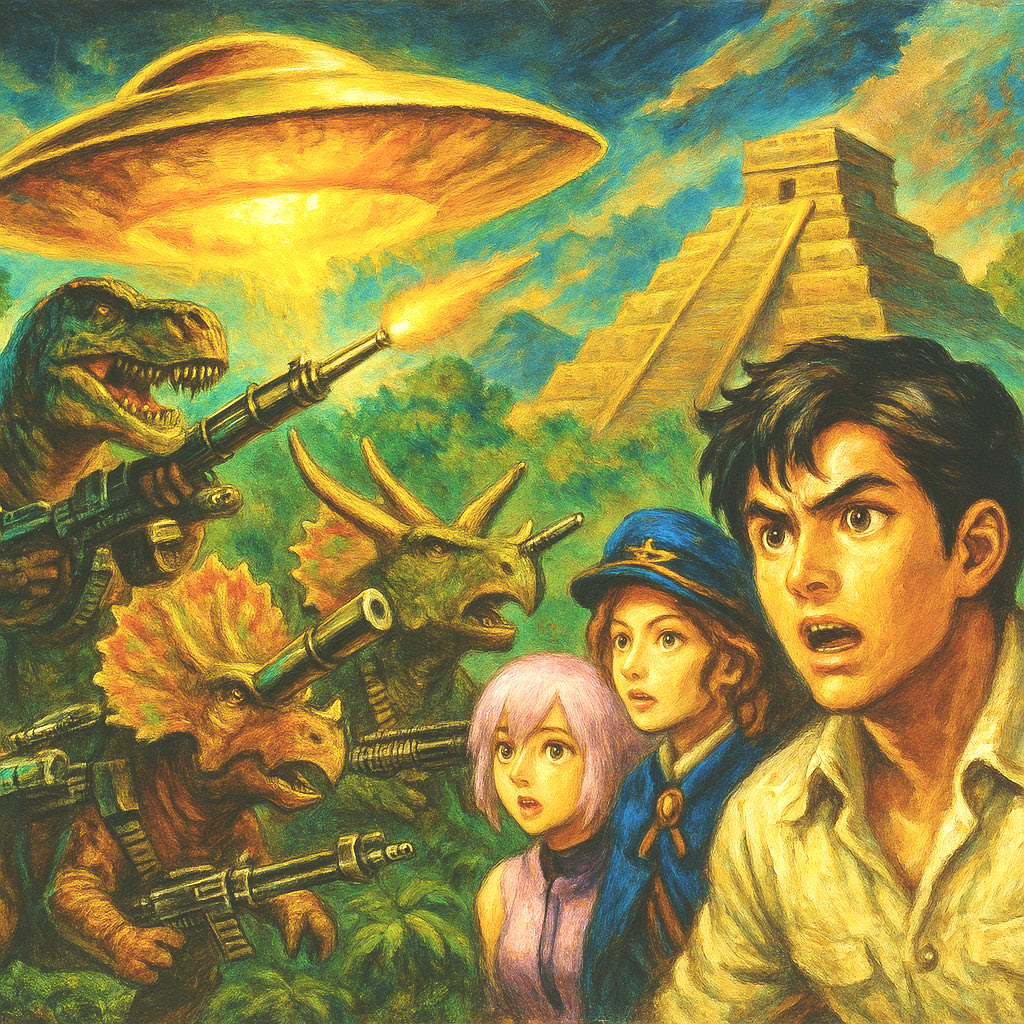 恐竜とUFOと人間が同じ画面に入ってるのトンチキの極みなんだけどここは紛れもなく原作を再現した結果なのが笑う