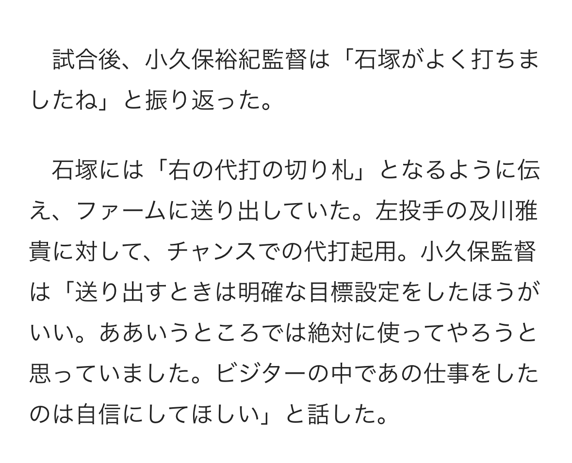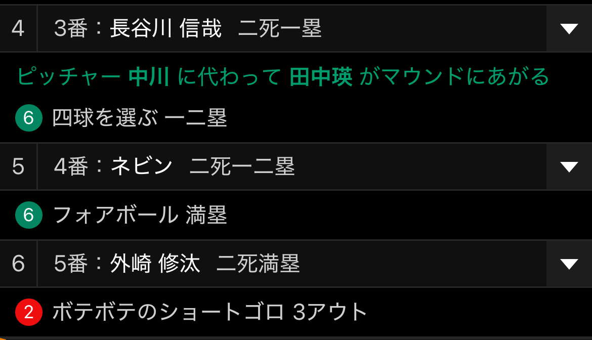 ⚡伊藤は三振で矢崎の代打増田