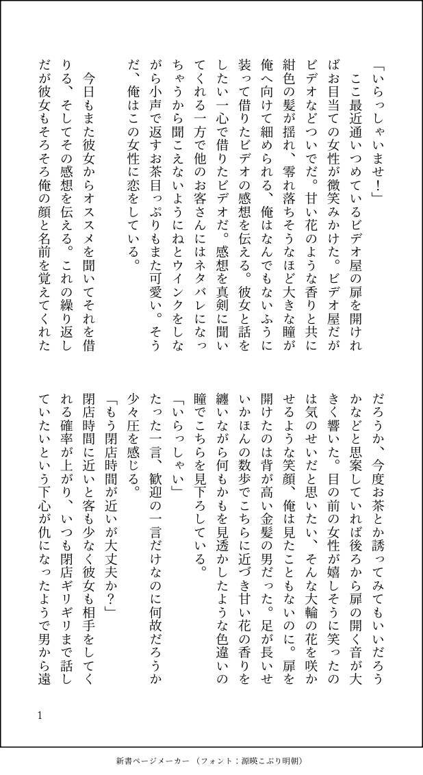 チャイムを押したが誰も出てこない。おかしい、いつもだったらここの人当たりが良さそうな男の店長が出てくるのだが。彼になにかあったのではと思っていれば扉が開いた。店長ではなかったが。長い金髪を雑に括りシャツを羽織っただけの美しい青年だった。昼寝をしていたのだろう微かに汗をかいていて髪も所々跳ねていた。この時期にエアコン無しで眠るのは命に関わることもある、と雑談まじりに話せば男は確かにそうだと眉を下げて笑った。相手は慣れた手つきで宅配を受け取りそれではと雑談を終えようと思えば後ろから彼の名前を呼ぶ鈴が跳ねるような声が聞こえた。その声に振り返った金髪の青年が焦ったようにそれではと告げて扉を勢いよく閉めた。その扉の隙間からチラリと見えたのはシャツを上に着ているだけの女性だった。髪は所々跳ねていて頬が微かに朱が差しており、白い太ももが遠くからでも眩しく見えた。そしてそれを見て自分は察した、彼らが何をしていたのかを。まだこれからも配達は残っているというのに、熱が集まった顔を手で仰ぎながらトラックに戻って行った。