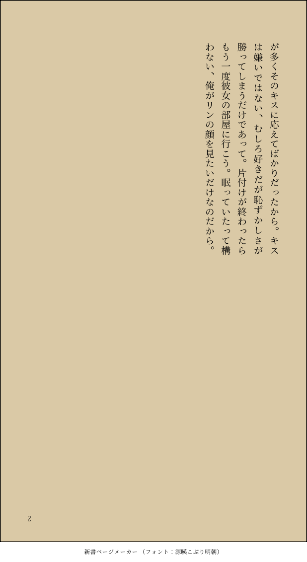 リンちゃんから快楽を一方的に与えられる状態から自分もリンちゃんを気持ちよくしたいと積極的に腰を振ったり口での奉仕を学んだり指の使い方を実践するんだよね - 28二次元好きの匿名さん25/06/23(月) 22:31:05