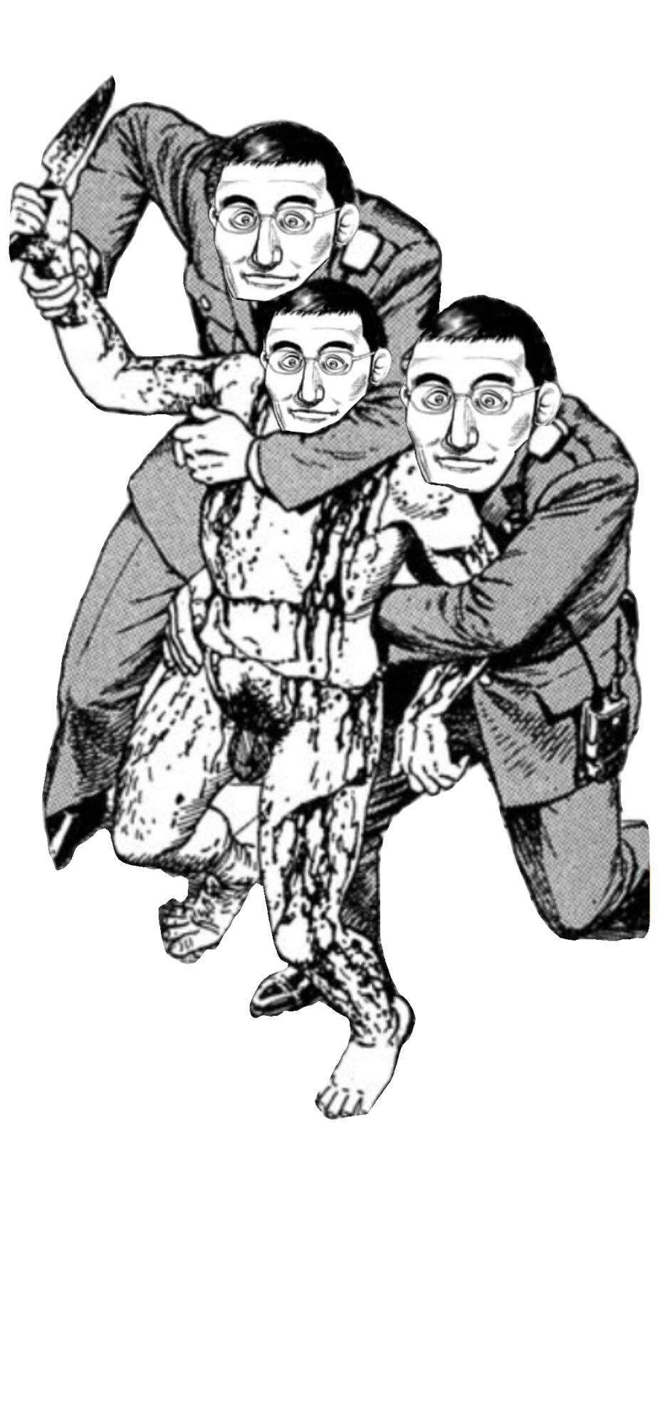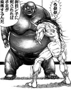 アサダの握撃で指や鼻や耳やチンコといった飛び出した部分がぐちゃぐちゃになるマナブ