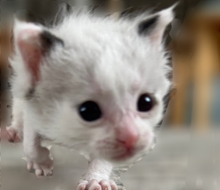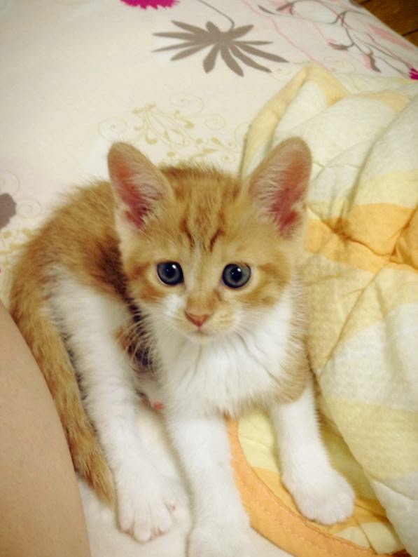 お目々はまだキトンブルー(猫の赤ちゃんは最初青い目)かな