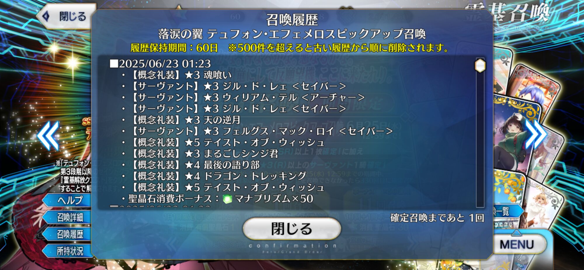 天井と天井直前召喚あるが天井直前召喚のが使った石は少ないのになんか悔しいんだよな