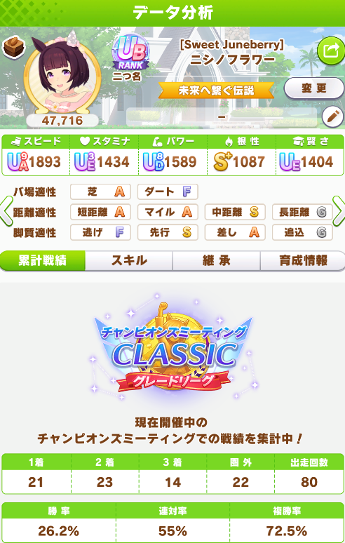 デバフ適性あるウマ娘以外でデバフやるの久々なんだけど今回はこれでようやくスタートラインレベルだねぇ…