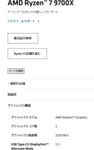 ZEN4の7000番代からは内臓GPU搭載してるらしいっスね