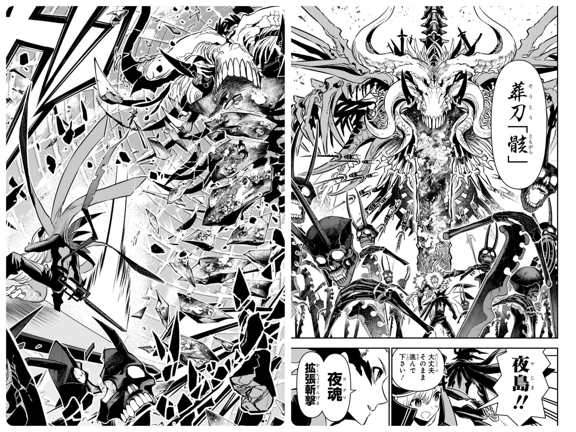 がしゃどくろの盡器クソデカ武器を背景に骸骨が滅茶苦茶湧くとかいう作画殺しの盡器だが本格戦闘になった場合週刊連載大丈夫か不安になるがまぁ大丈夫か()