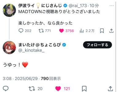 前々から思ってたけどMADTOWNでも凄いなって思うとこの連続だった - 177二次元好きの匿名さん25/06/29(日) 18:58:56