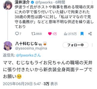 始めての犯罪楽しいね伊波主催 - 197二次元好きの匿名さん25/06/30(月) 01:36:09