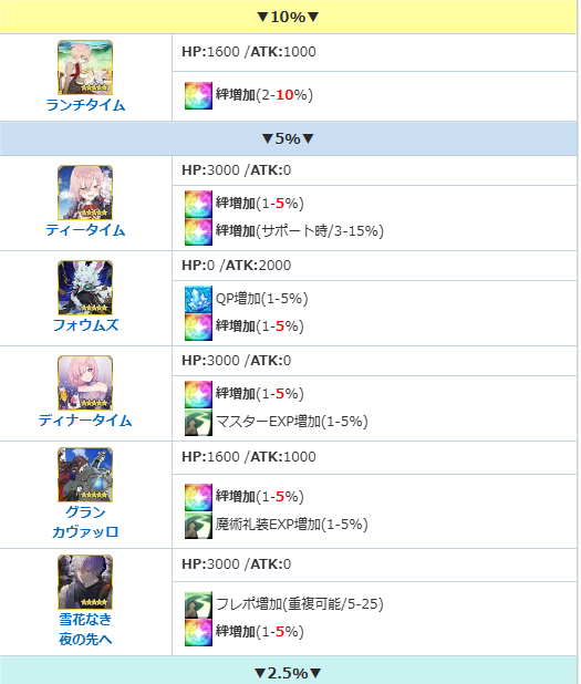 その後の詰め込みでディナーのマスター経験値やカヴァッロの礼装経験値カンストしてると無駄になるから他に何か入手できる礼装欲しいねって話だぞ