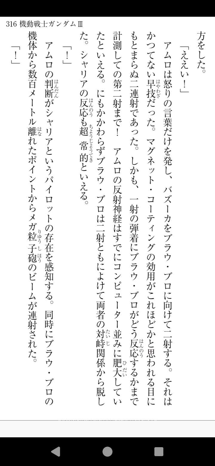 小説版のシャリアは強いと聞いてたけど詳しく聞くと想像以上に強くて笑う