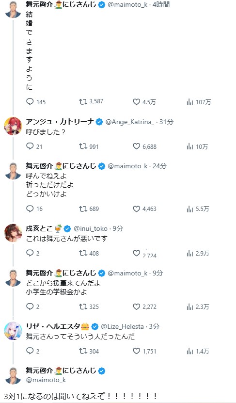 結婚願望を短冊にした舞元、アンジュに当たり屋されたのをどっかいけと言ったら皇女ととこちゃんに外堀を埋められそうになっている