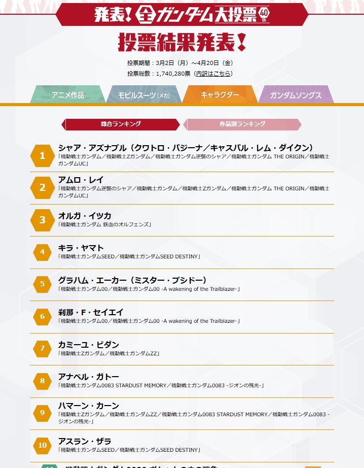 作成年代に媒体もそうだし色々言われがちなキャラでこの順位なのかなり大健闘なのでは…と思ってしまう