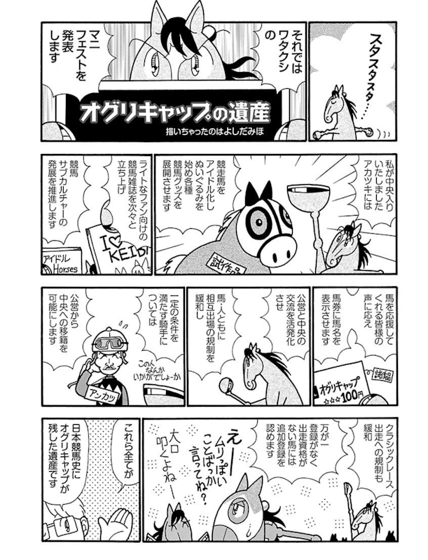 ハイセイコーブームという先例はあるけど、それまで耳赤ペンおじさん達が競馬場の主力だったのを「競馬=馬のドラマ」として、耳赤ペンおじさん以外にも競馬場に定着させたという点では、やはりオグリは捨てがたい。