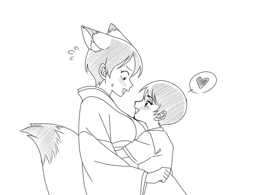 ヒロが大人になって再会したら記憶の中の可愛かったショタヒロとまったく違う大人の男性に成長しててドキドキしちゃう狐ミッちゃんと、逆に昔と変わらないミッちゃんにやっぱりあれは夢じゃなかったんだ⋯!!って確信するヒロ