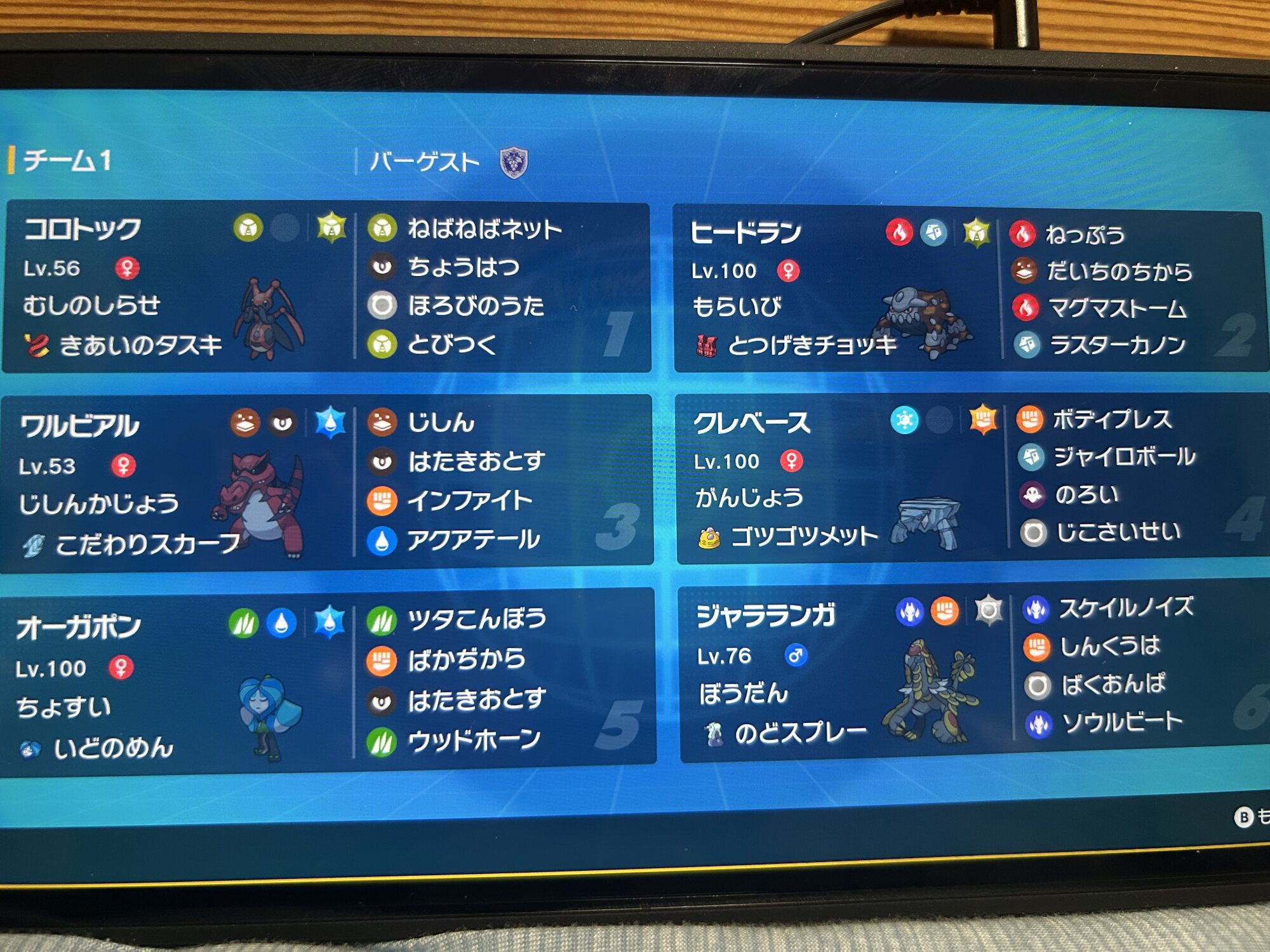 クレベース(ウカムルバス):地面技の大半は物理なので地面弱点じゃない物理受けとして採用 ゴツメはあまり意味なかった気がする