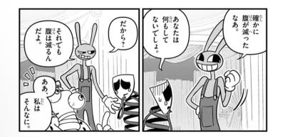 穏やかな見た目に反して死ぬほど大食いだし日本人は少食だね(笑)と煽るバニー