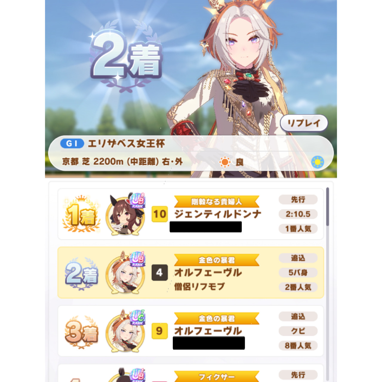 5位42P:班目 爆(ジェンティルドンナ)