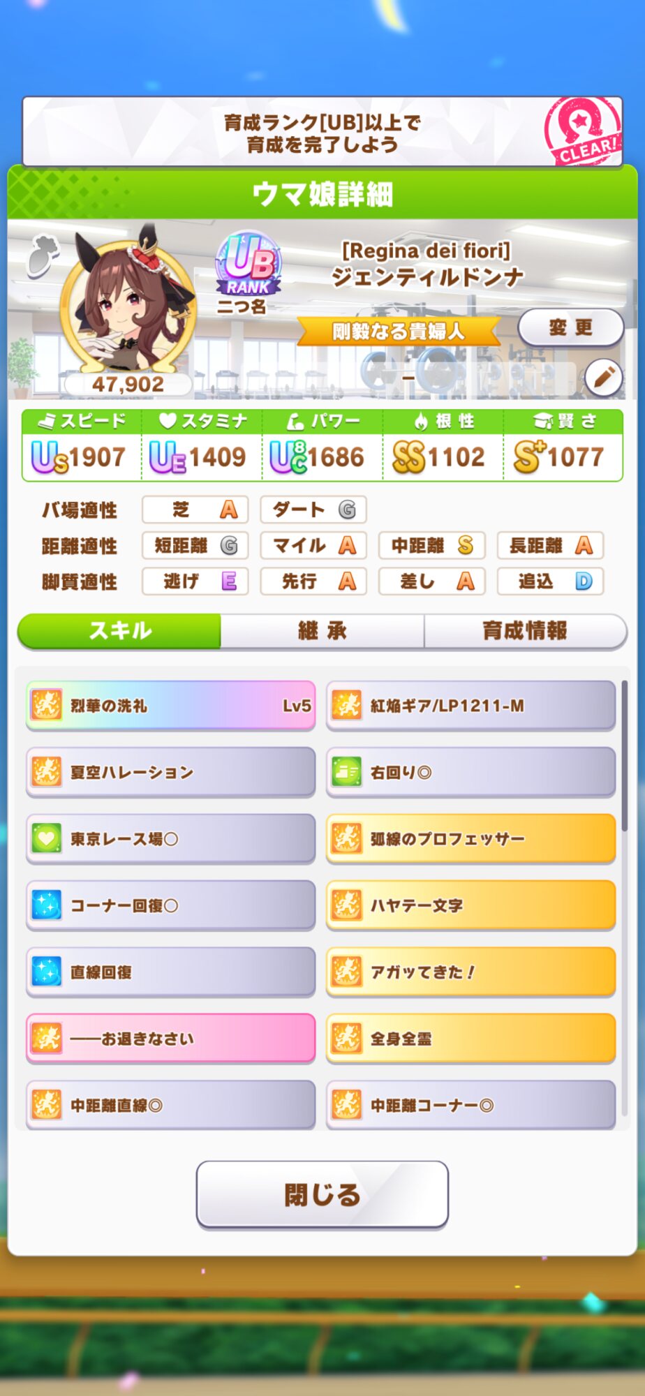 中距離スキルあって右回り持ってて一番乗りあるからありだと思ったんだよね