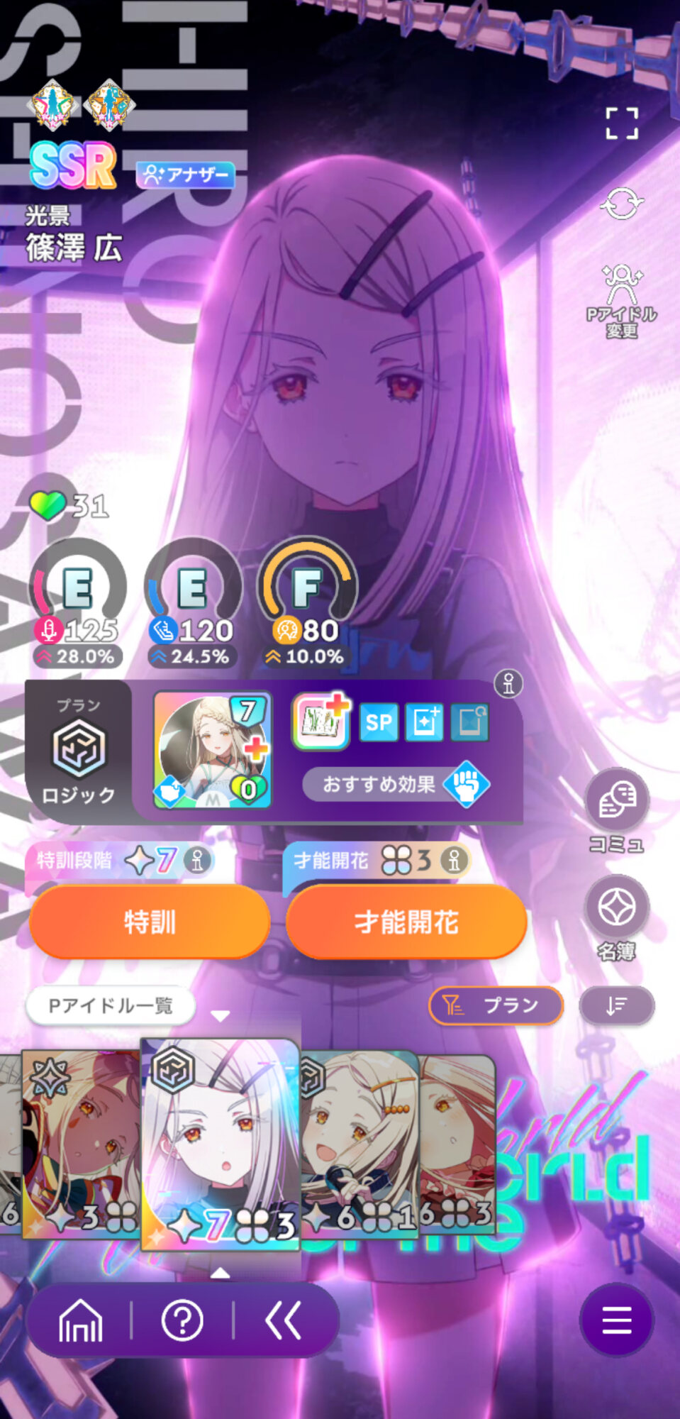 Cm広はですねぇ……えいえいおーに再行動が付くから終盤貯まりまくったやる気を利用して元気爆盛しつつ火力札も撃つみたいなやばい動きが超簡単にできるんですよ しかも元気は普通に1000近く行ったり千奈みたいにキーカードのタイミングの難しさもなかったりする…… オーディションの応援とも相性良いしエウレカもあるからめちゃくちゃバランスよく稼ぎやすいしなっ