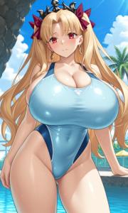 水着イシュタルの胸のファスナーは大きい余り開けてるな