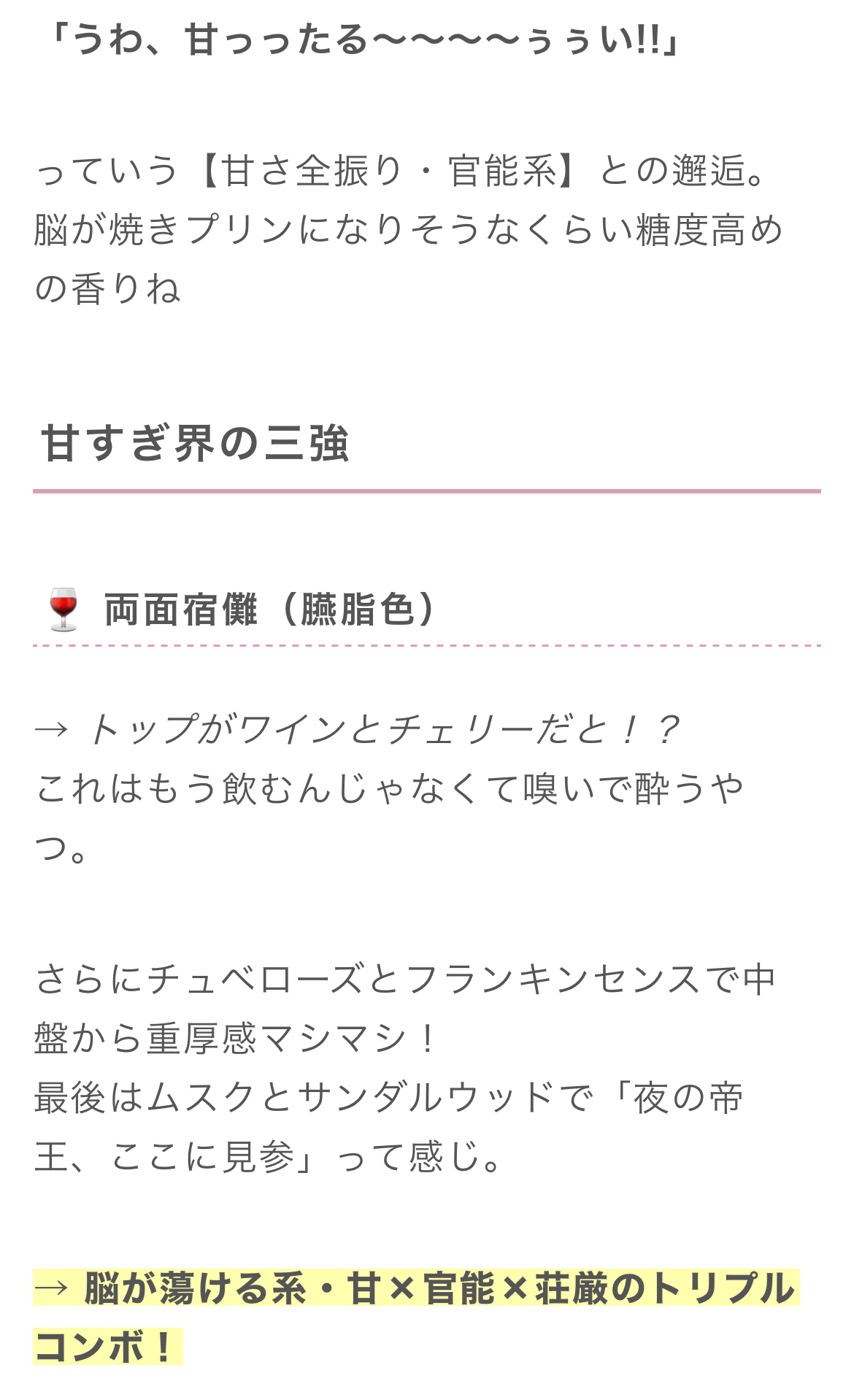 買ったけど甘さと濃厚さ官能さと重さMAXだから酔わない人じゃないと使えなそう