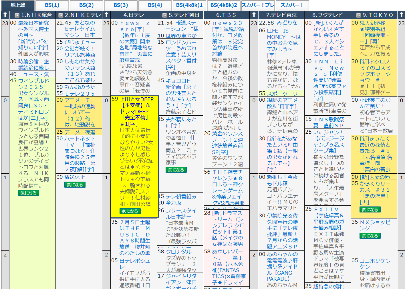 上田と女の欄が大き過ぎてジークアクスを入れられなかったんだな。番組欄に書ける文字数には限りがあるから