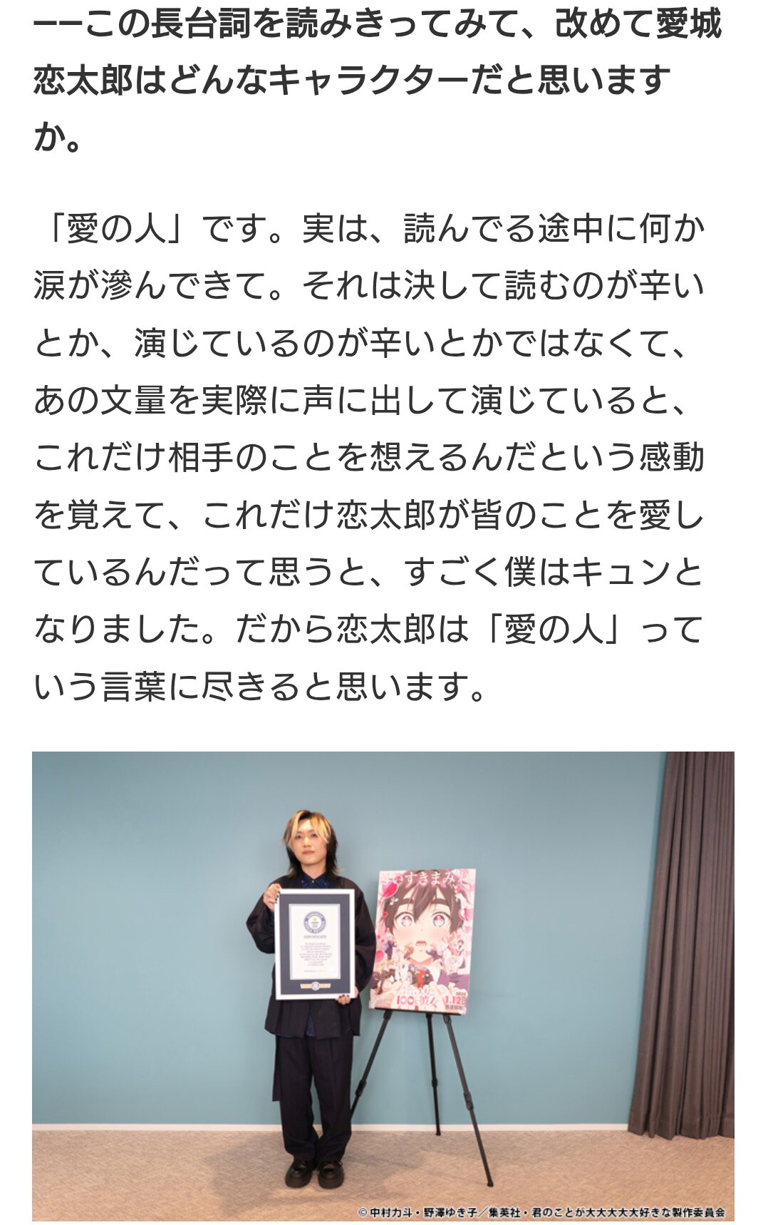 100カノと恋太郎ファミリーを愛してくれて全身全霊で恋太郎を演じてくれて本当にありがとう