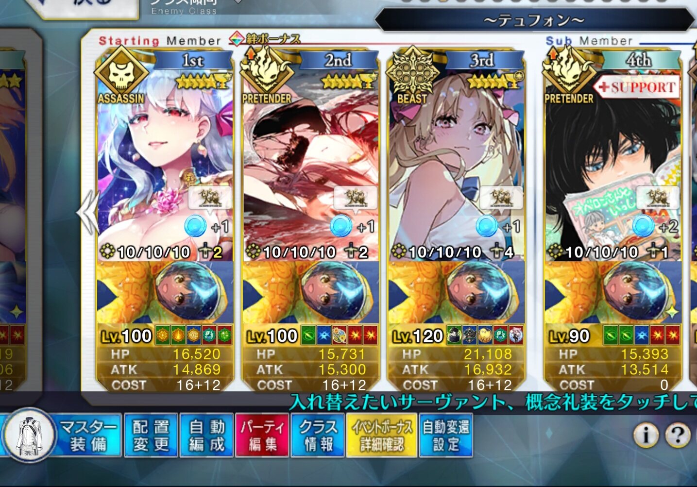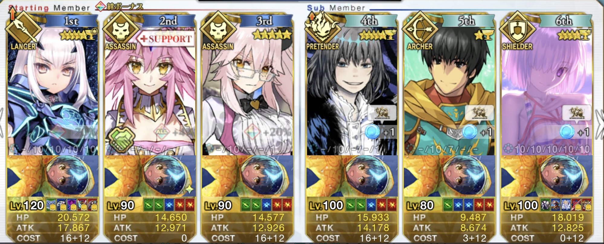 自前のNPと横バフと1wave抜けられる火力あるキャラならなんでも良い説あるな(横バフないと多分スフィンクス残る)