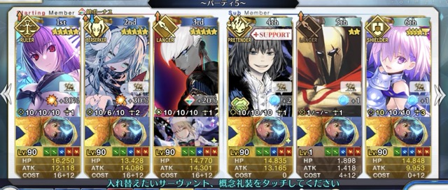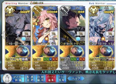 槍王いるけどメリュ子宝具1だし90++は周れなさそうか……??
