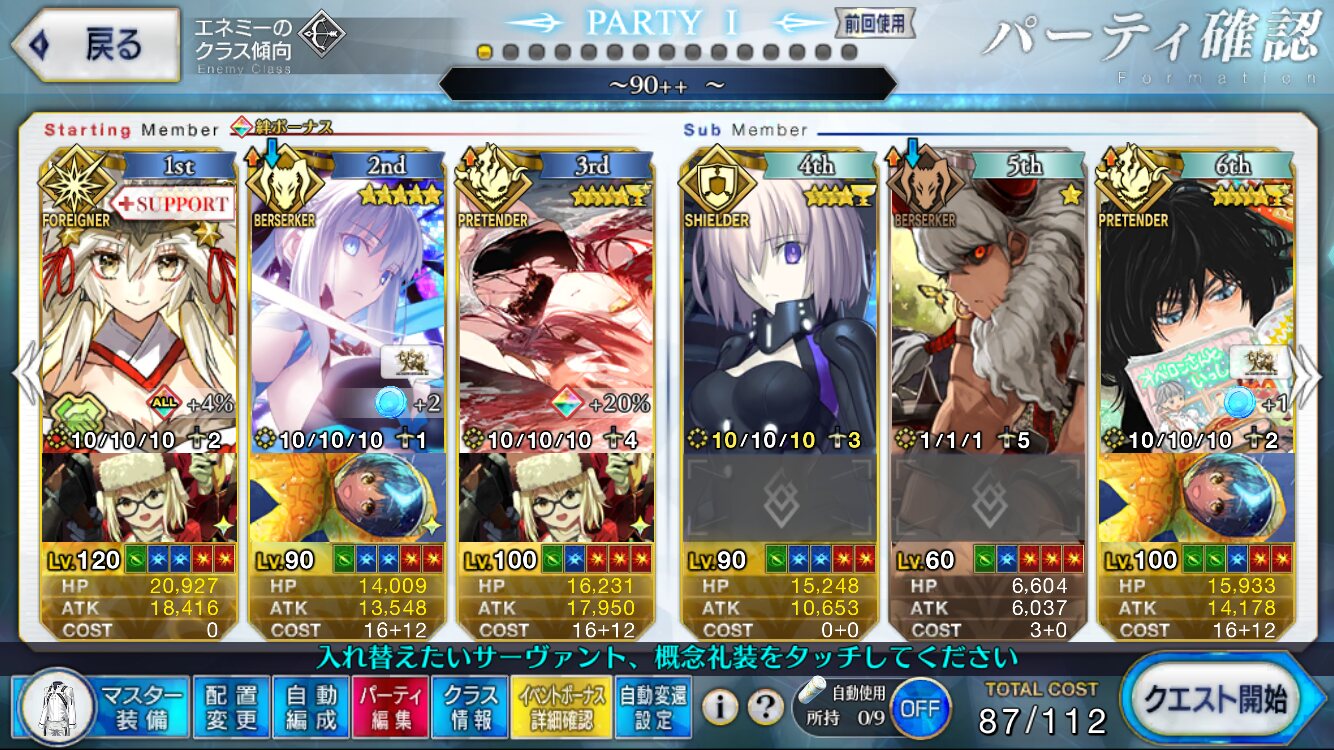 一応回れるようにはなったけどちょっと不安定だからある程度礼装落ちるまで90+を回ることにした