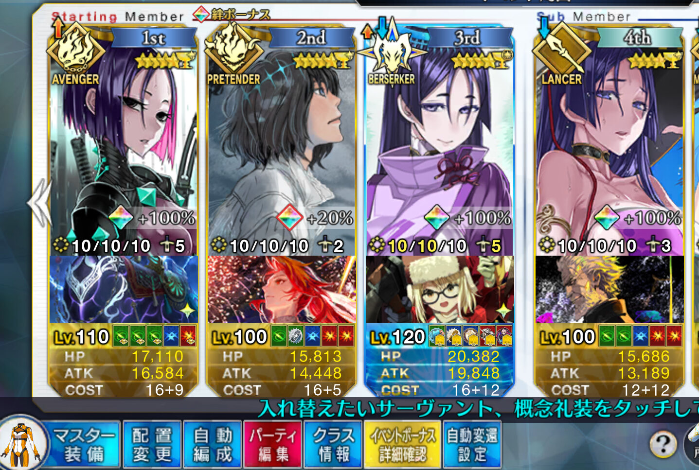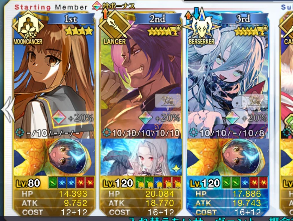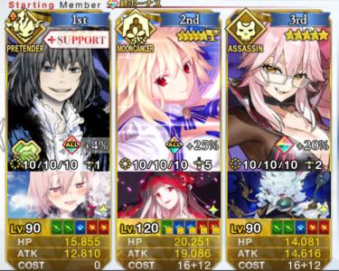 レベル90宝具5だとズムーンの火力足りないから注意な