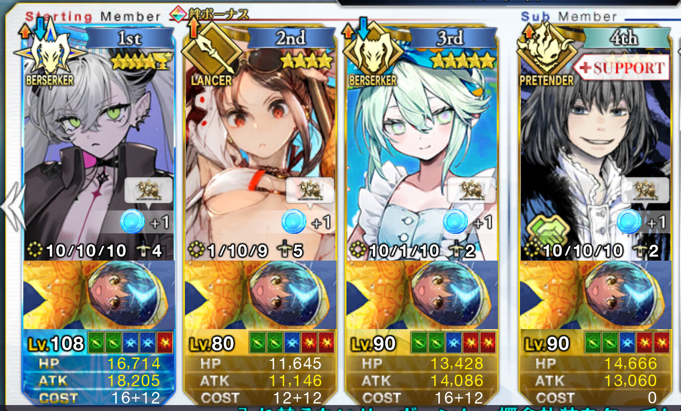 ロウヒ(宝具1)エフェ子(宝具1)水着伊吹(宝具1)モルガン(宝具1ちょっと残る)トネリコ(宝具3↑?)水着エレちゃん(宝具3↑?)は行けるの確認しました
