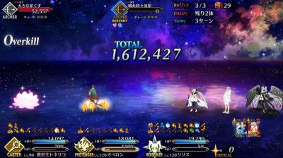 テュフォンビーム→オダチェン水スカリリス→オベロン宝具リリス宝具
