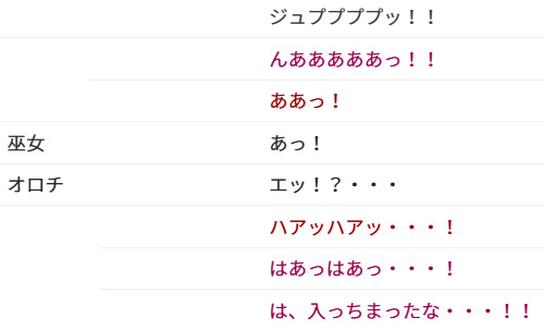 受けが「もっと強く乳首触らないとオロチ様怒っちゃうよ!そうですよね!?」って巫女に聞いてて