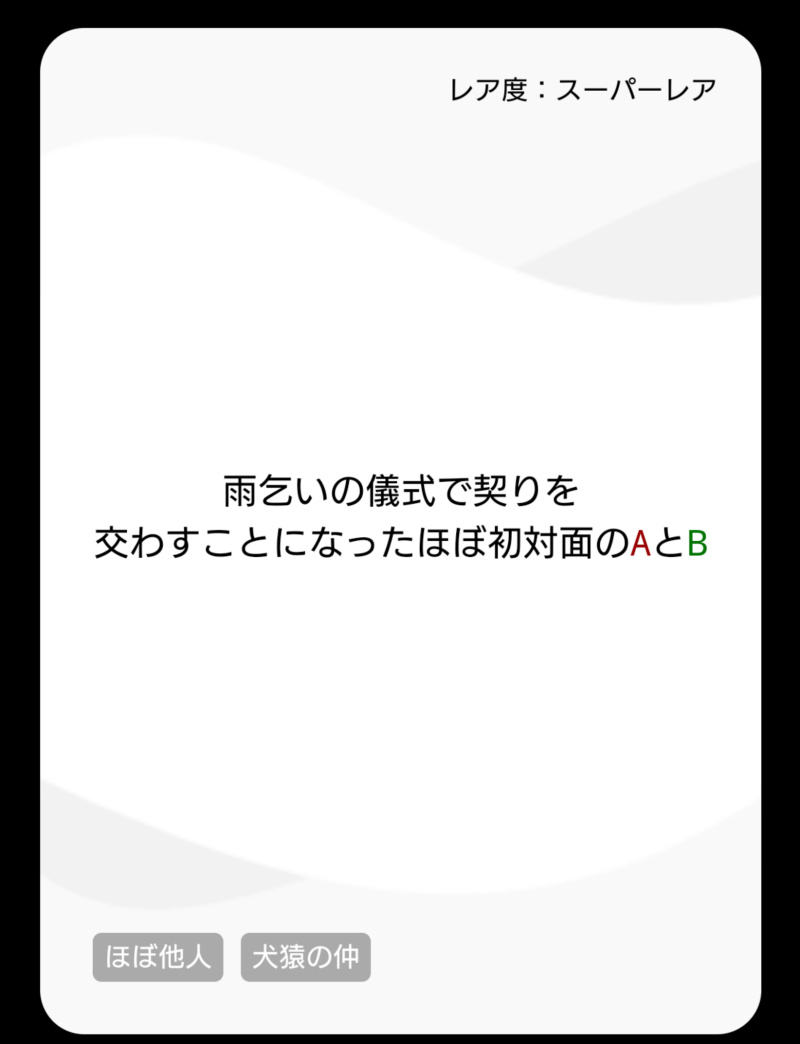 同じ母乳or学校でキスだったから全員カードの内容は同じってことかな