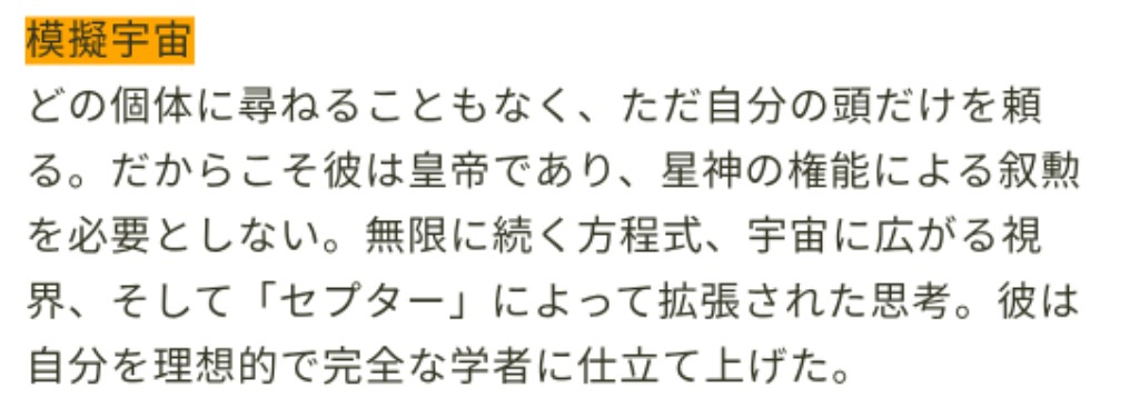 因子と模擬運命というのは、ループするうちに運命の行人(各運命のエネルギーをちょっとだけ使える人)のパターンを算出できたって理解でいいのかな