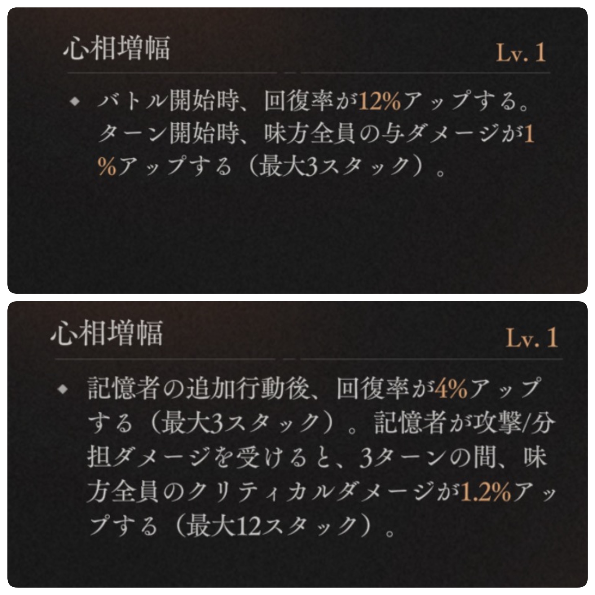 特に最近のエピソード報酬で貰える奴は非アタッカーで専用心相がない奴に取り敢えず付けておけば問題はないと思えるレベルの性能してるのん