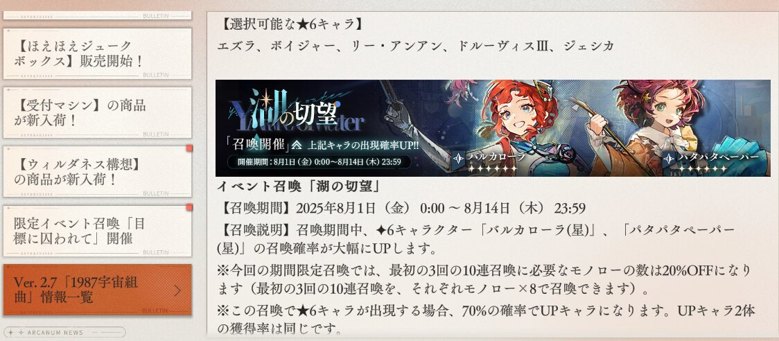 えっこれ期限無いんスか、それなら二択だし「どっちかがすり抜けた後もう一個をとる」とか「相性のいいキャラが出た時そっちをとる」ってのが賢いのかもしれないね