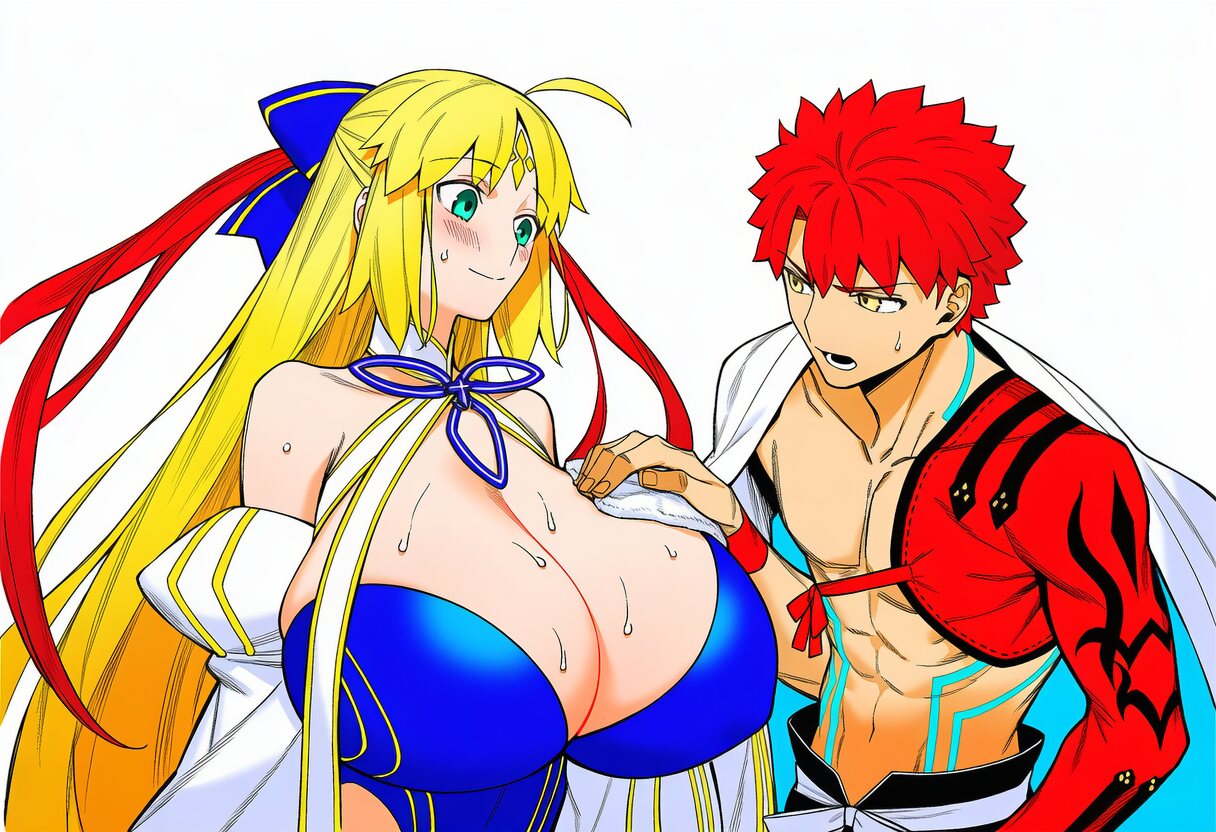 転んだ拍子にうっかり押し倒してA・Aのおっぱい揉んじゃう形になったぐだの画像って出来ますか?