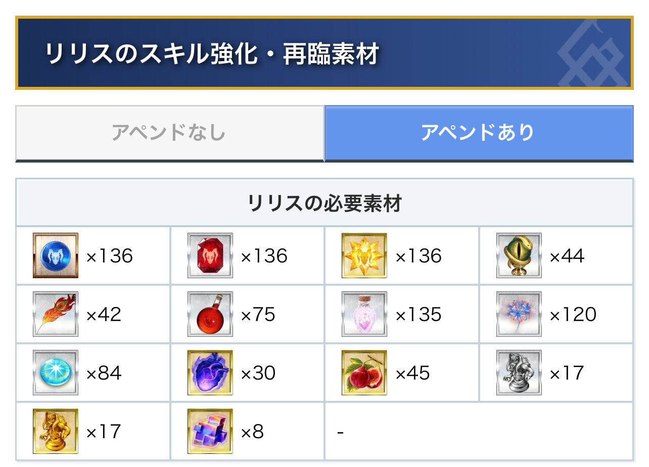 ここを見てアルジュナオルタのアペンドの素材を確認したらこれは…
