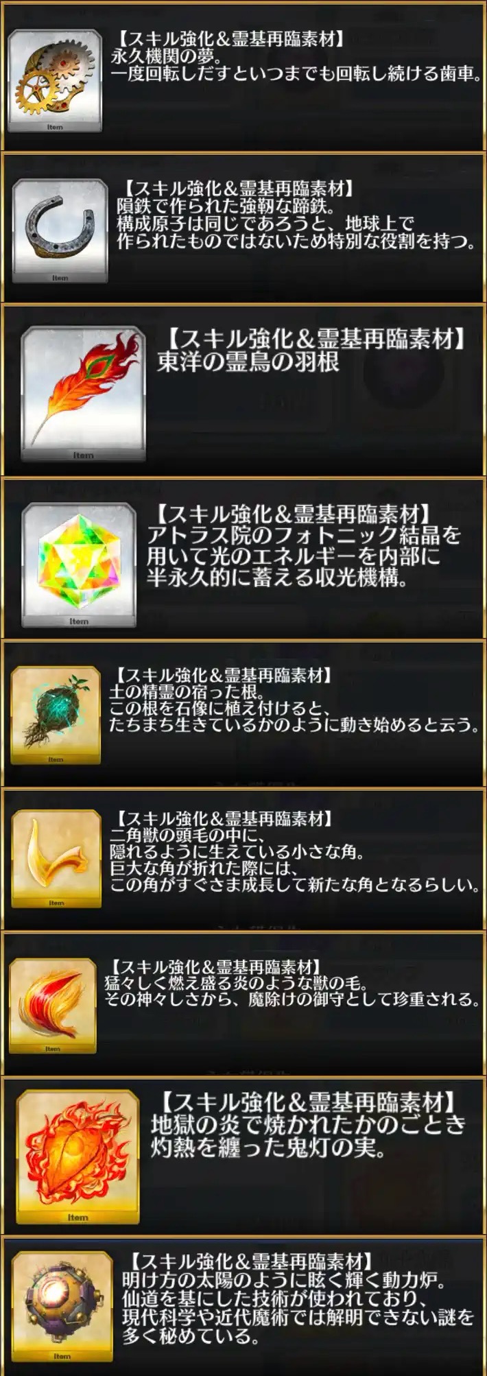 素材のフレーバーテキストってあんまり気にしてなかったが、ちゃんと読むと割とだいたい意味深だったり重かったりするんだな
